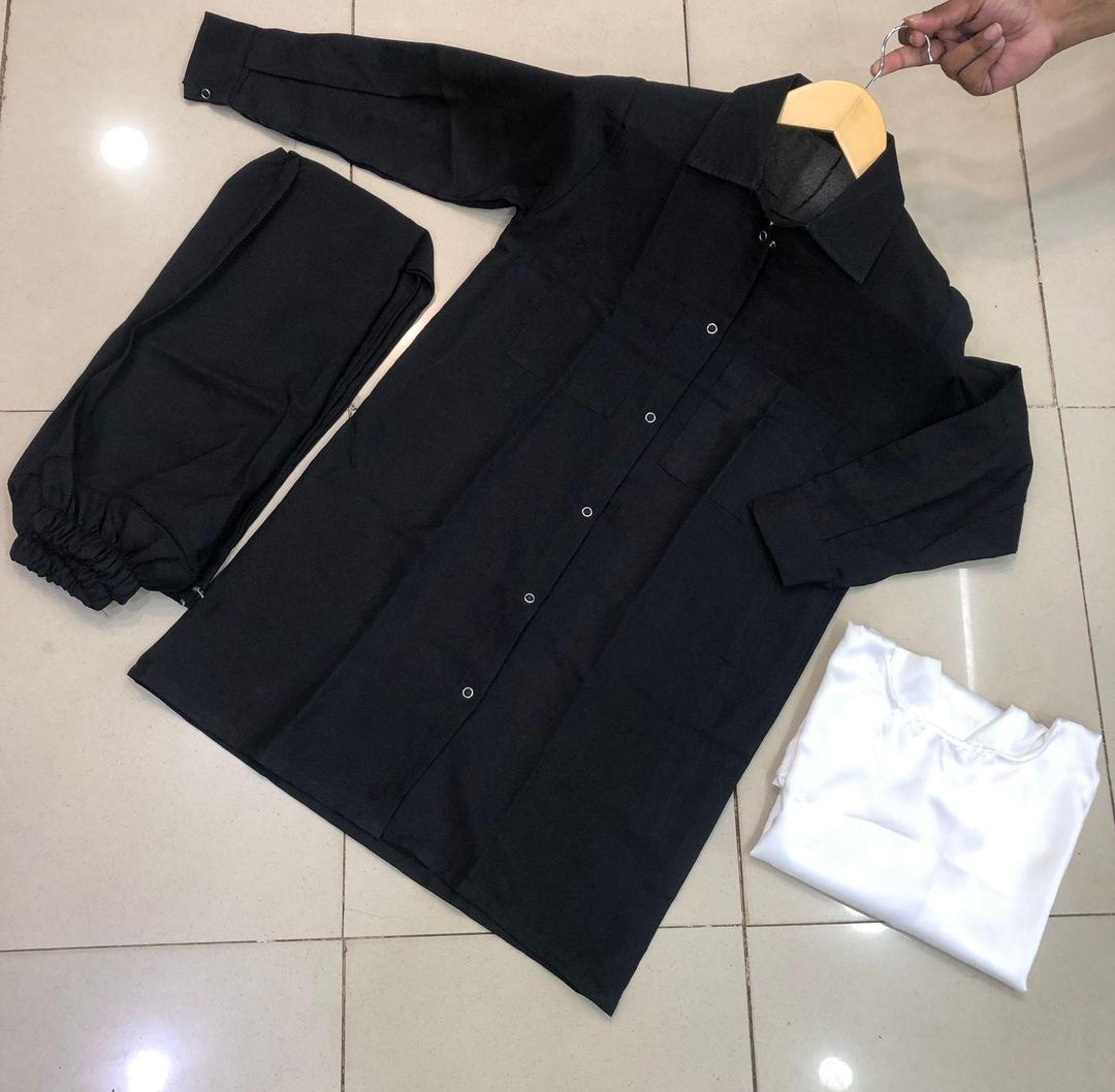 Elevate your wardrobe with this chic Women's Stitched Suit, crafted from premium black Georgette fabric. The plain pattern exudes sophistication, featuring a stunning collar neck type for a fashionable edge. This versatile 2-piece set includes a coat and trouser, perfect for various occasions. Experience comfort and elegance in one package today!